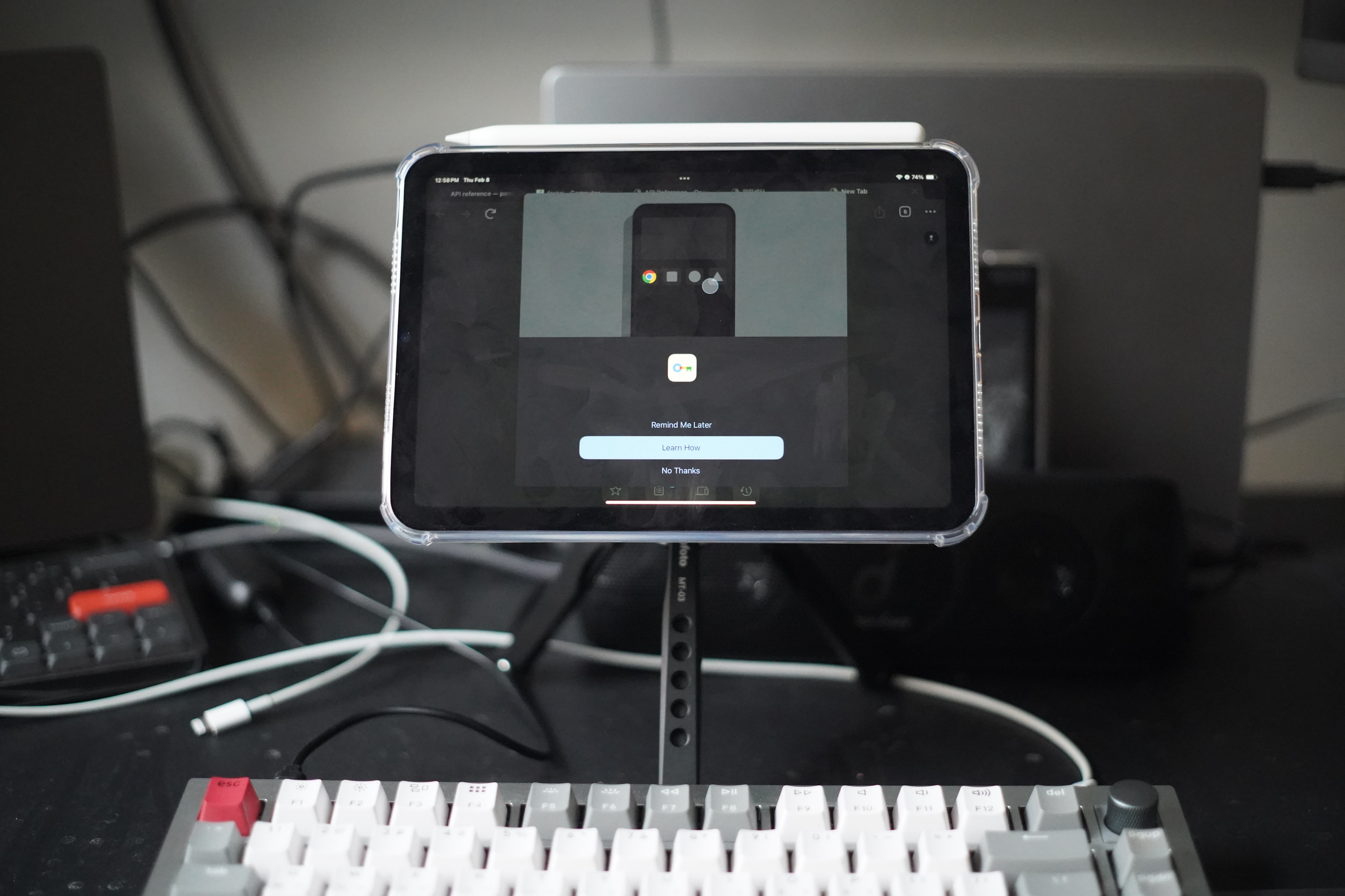 스마트폰도 거치가 가능하고 메인 e북 리더로 사용중인 오닉스 페이지도 아이패드와 동일하게 사용 가능하도록 젤리케이스와 마그네틱 스티커를 붙여놓은 상태이다.