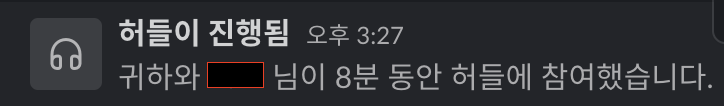 허들을 종료하면 얼마나 대화했는지 시간정도 보여준다.